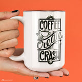 Our Creative Lifecycle mug is essential to your cupboard. Original artwork is hand lettered, and printed onto a sturdy white, glossy ceramic mug, with contrasting black interior. This large, 15oz. ceramic mug is microwave safe, and put it through the dishwasher as many times as you like, the quality will not be altered.