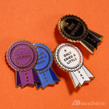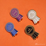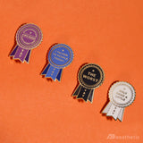 This set of all four of our most popular pins includes a Purple Participation Ribbon, Blue Award Ribbon, and White Award Ribbon. The Awkward Award for Conversation Participation, the Introvert Award for overcoming social anxiety, the Emo Award for only getting a 'bit' emotional, and The Worst Award for those days when nothing goes quite right. They're well earned, and you deserve them! Congrats on your achievements. You rock!