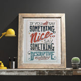 If you can't say something nice, say something descriptive. This is a digital print of my original hand-drawn piece. I hand lettered this quote from my best friend and it happens to be great advice. Words to live by.