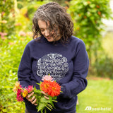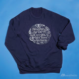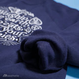 This super-soft sponge fleece sweatshirt looks great, and fits like a well-loved favorite. Seriously, you'll never want to take it off. This deep navy blue sweatshirt is made of 52% Airlume combed and ring-spun cotton, and 48% polyester fleece. Graphic is screen printed in the USA.